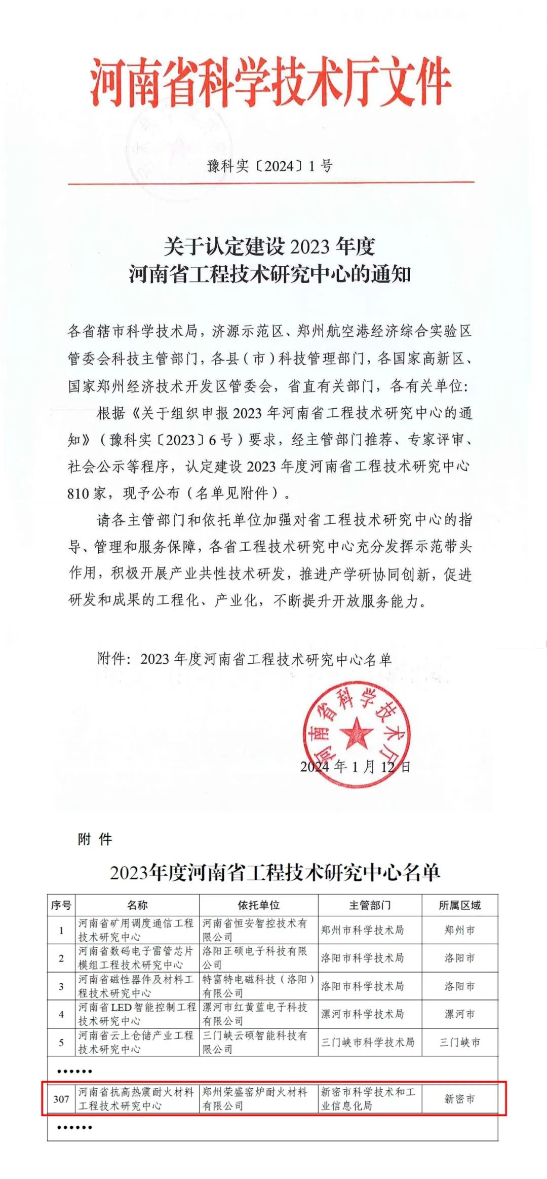 近日,河南省科學(xué)技術(shù)廳發(fā)布了《關(guān)于認(rèn)定建設(shè)2023年度河南省工程技術(shù)研究中心的通知》。經(jīng)申報(bào)、主管部門推薦、榮盛耐材論證和研究等程序,鄭州榮盛窯爐耐火材料有限公司(以下簡(jiǎn)稱“榮盛耐材”)申報(bào)的“河南省抗高熱震耐火材料工程技術(shù)研究中心”正式獲批。